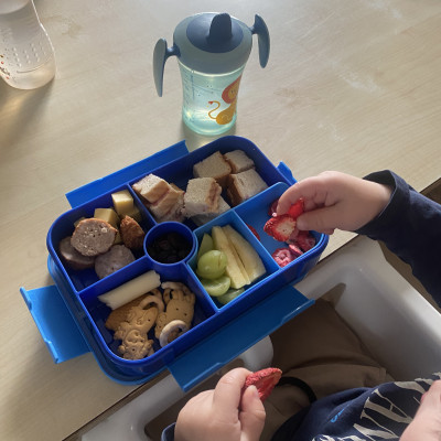 Der Tag beginnt mit einem gemeinsamen Frühstück von zu Hause, und später noch einer Obstpause. Das Mittagessen wird frisch zubereitet; bei Allergien oder wie gewünscht kann eigenes Essen mitgebracht werden. Nach dem Essen gibt es eine Ruhe- bzw. Schlafzeit. Anschließend erhalten die Kinder einen kleinen Snack und spielen frei, bis sie abgeholt werden. Wasser steht jederzeit zur Verfügung.